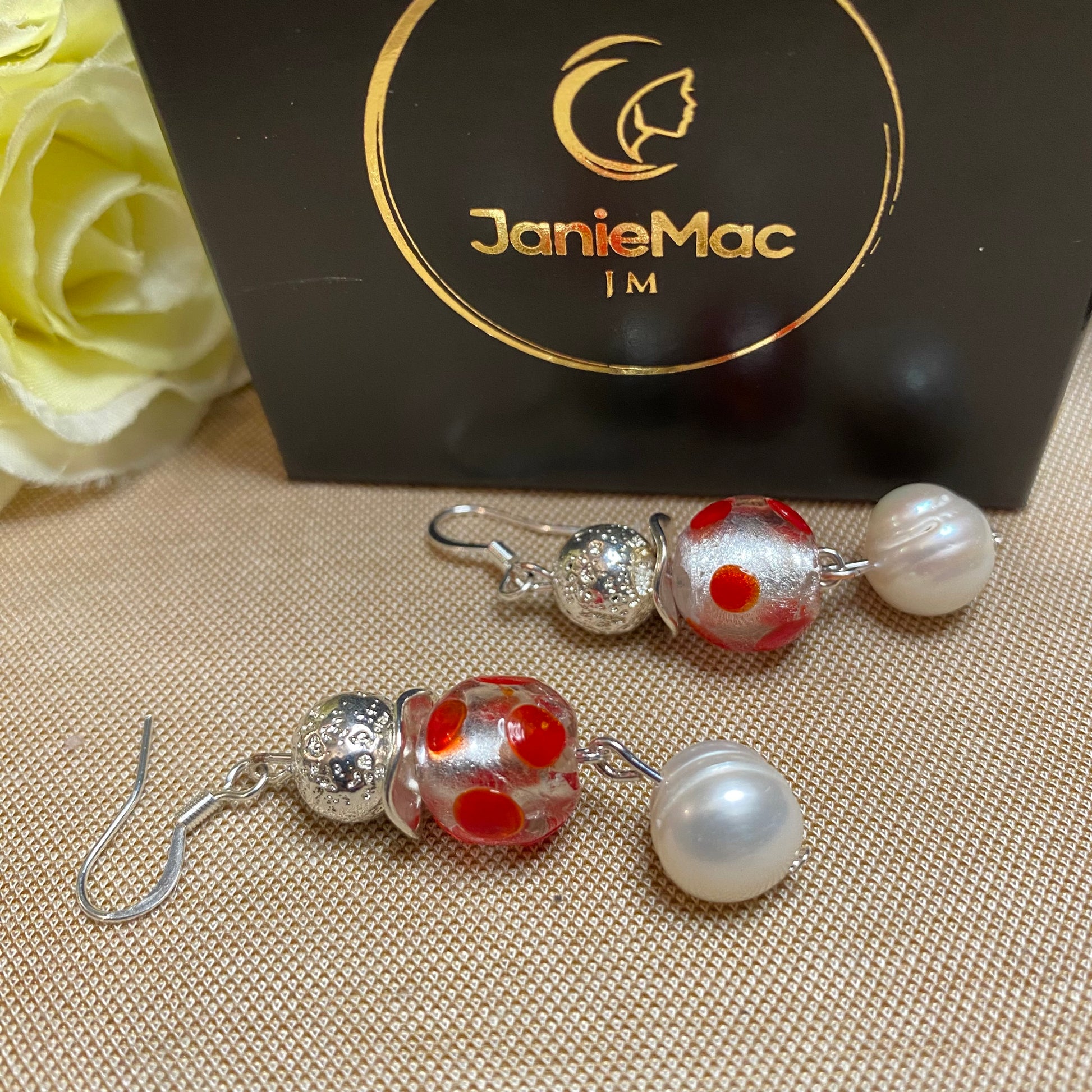 Add to your jewelry collection with my Lava, Glass and Freshwater Pearl earrings. These unique earrings feature natural Lava silver plated beads paired with luxurious Murrano Glass and lustrous Freshwater pearls. Elevate any outfit with the perfect combination of elegance and natural beauty.